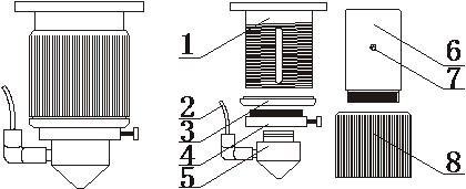 1.聚焦鏡內(nèi)筒 2.進(jìn)氣管 3.限位螺圈 4.氣嘴過渡套5.氣嘴 6.鏡筒 7.限位螺絲 8.調(diào)節(jié)套筒.
